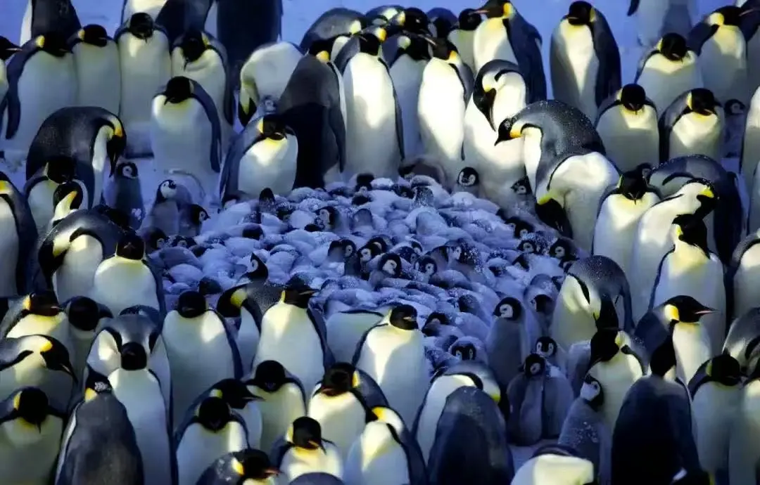 仅靠身体的“天然装备”还不够,企鹅在长期的生存中,还学会了运用集体智慧抵御严寒,“抱团战术”就是它们最核心的生存法宝。当南极遭遇暴风雪、气温骤降时,成千上万只企鹅会紧密聚集在一起,形成一个巨大的“企鹅团”,就像一个温暖的“龟阵”,通过集体的力量抵御寒风和极寒。